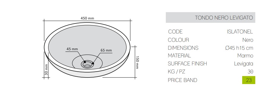 Lavoar pe blat Tondo Nero Levigato-IMSO, 45xh15 cm